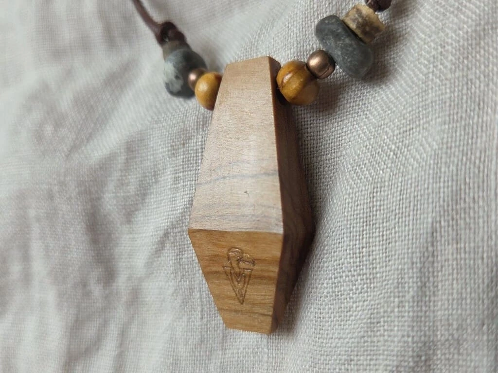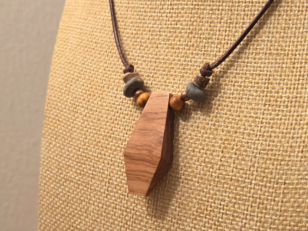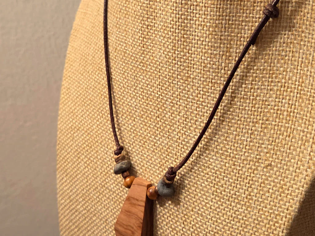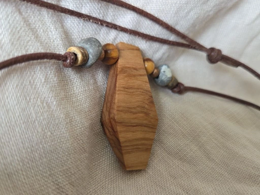 Die Maserung zieht ruhig quer durch und gibt dem Ganzen genug Leben, ohne aufdringlich zu sein. Insgesamt schlicht, aber genau deswegen stimmig. Dazu eine etwas dickere Lederschnur mit 1,5 mm.