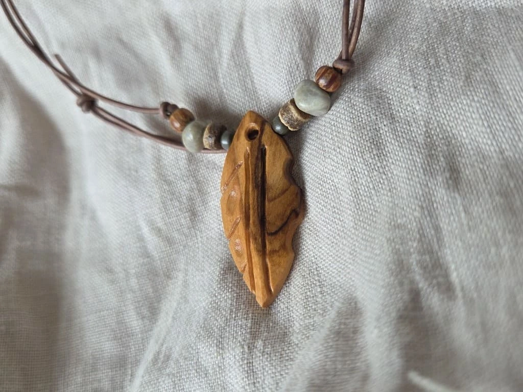 Diese Kette kombiniert Olivenholz mit dezenter Maserung und einer klaren ovalen Form. Natürliche Steine und Kokos-Elemente sorgen für Kontrast und Struktur. Kupfer setzt einen warmen Akzent, Leder bringt Flexibilität und Tragekomfort. Erdige Materialien, ausgewogenes Design, unaufdringlicher Charakter.
